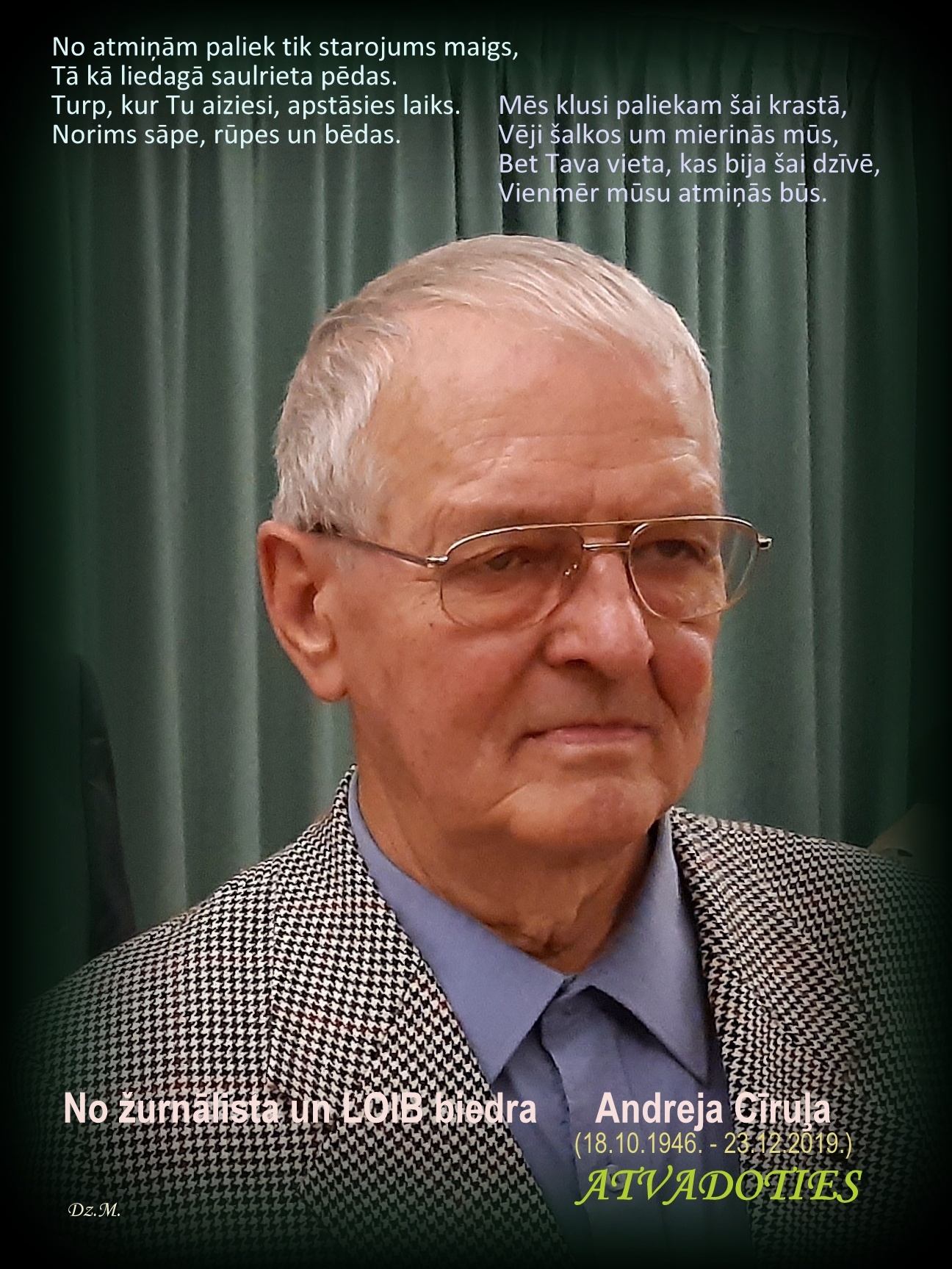 2019. gada 23. decembra rītu vairs nesagaidīja mūsu tuvākais, aktīvākais valdes loceklis – ANDREJS CĪRULIS.