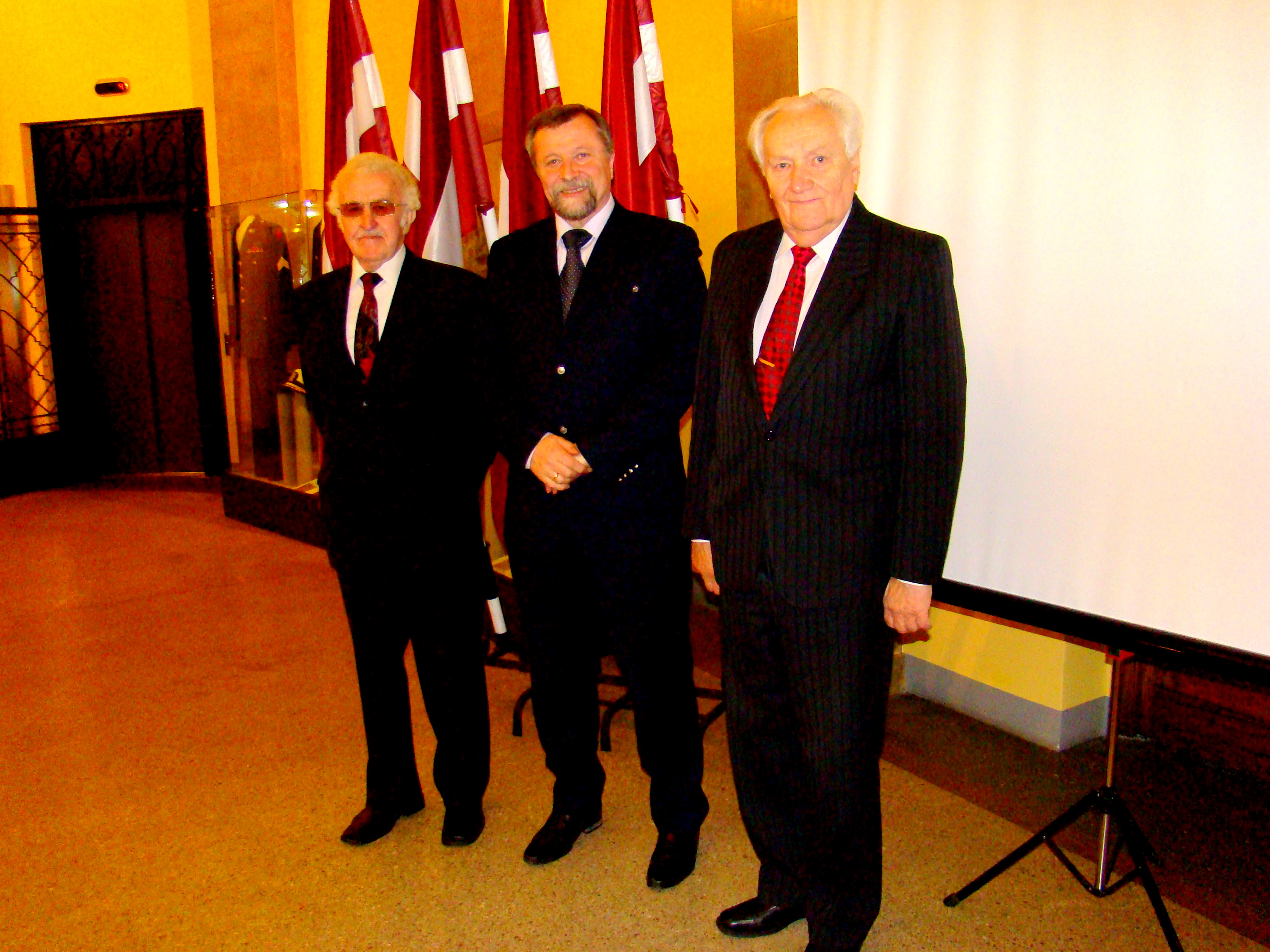 Attēlā – grāmatas autori: Ilgonis Upmalis, Jānis Dinēvičs un Ēriks Tilgass